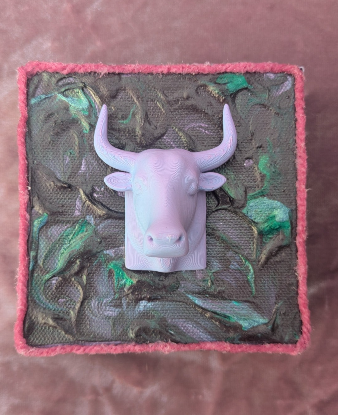 Mounted Pink and Purple Bull