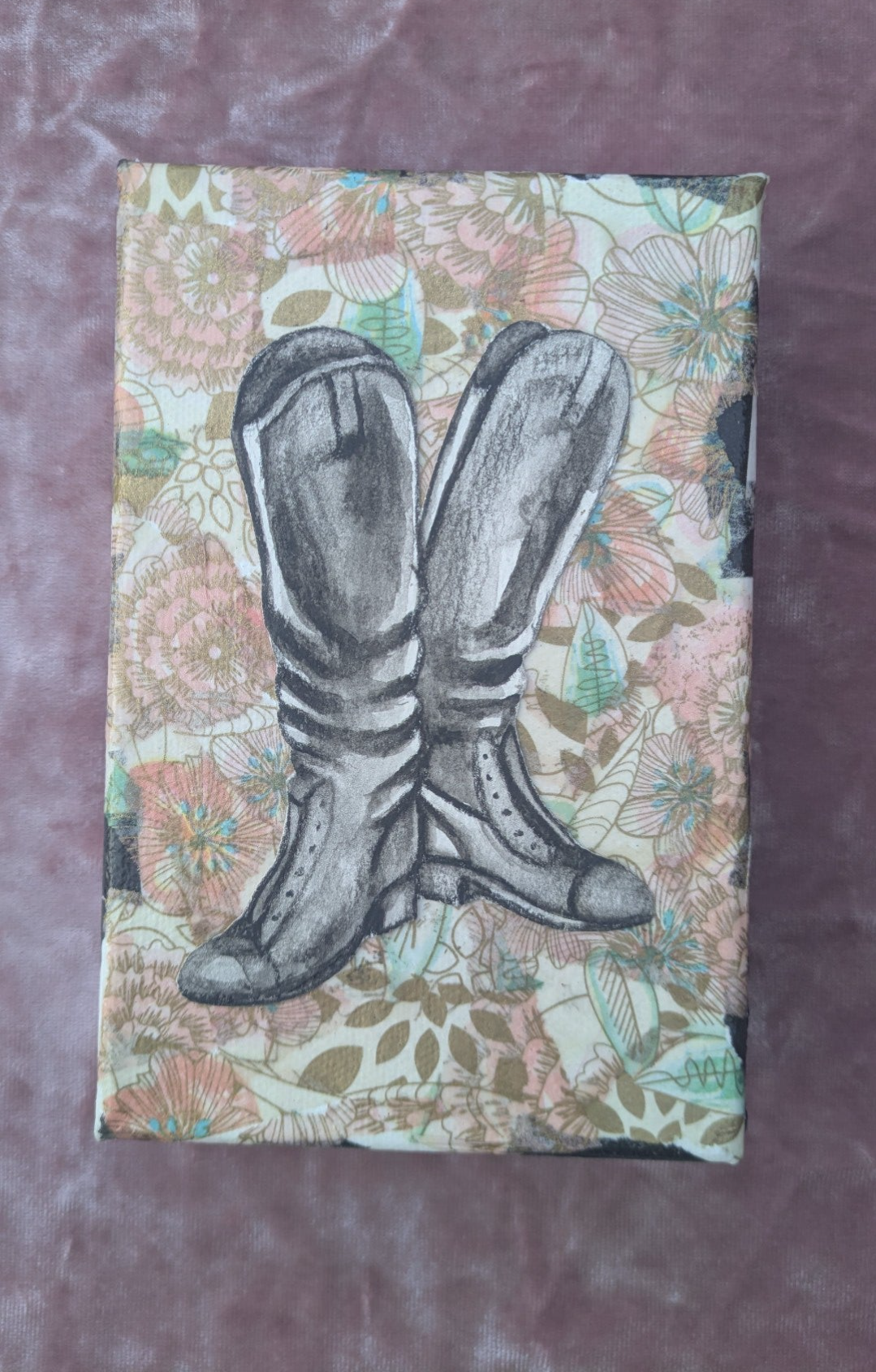 This mixed media piece is on canvas.