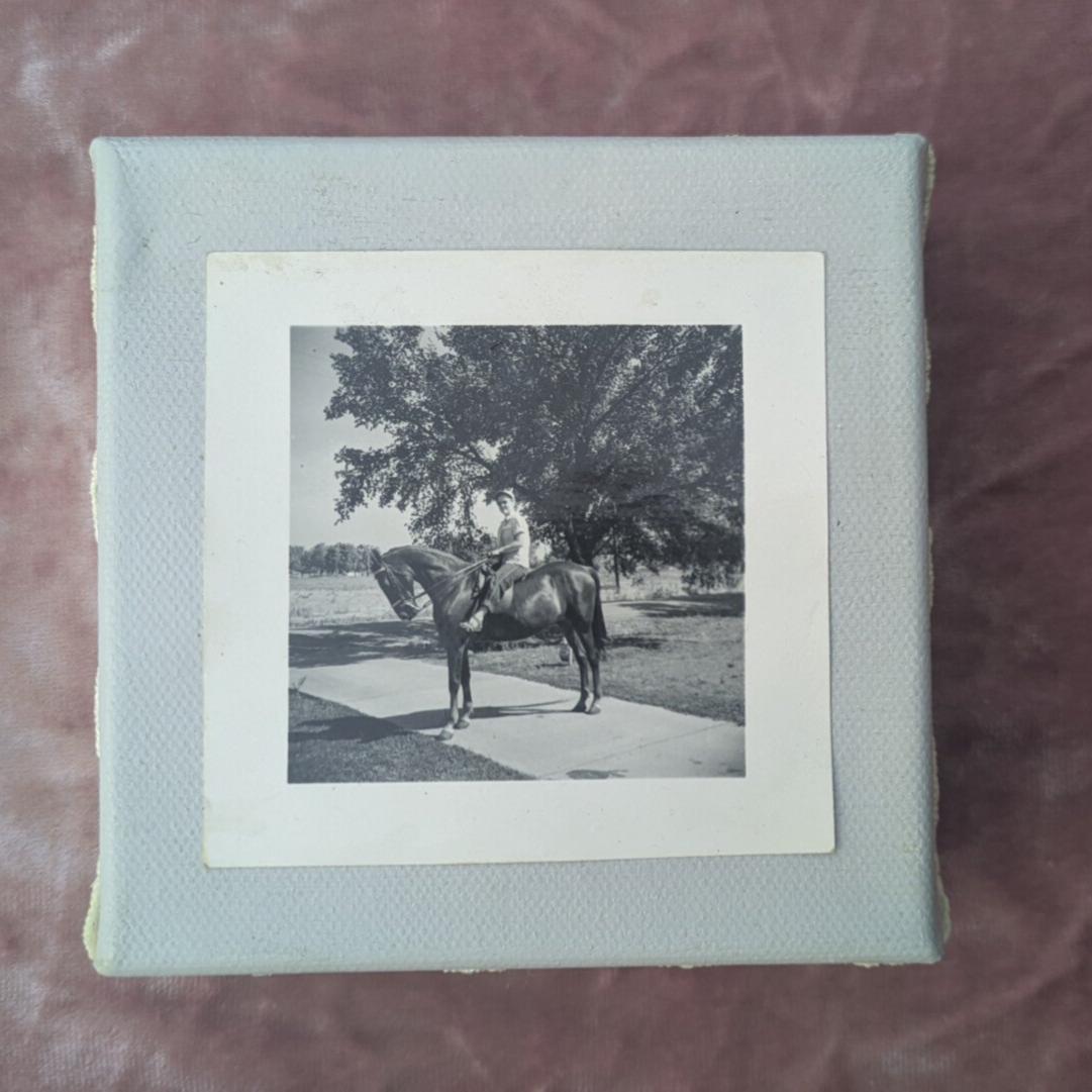 Antique Collage of Rider and Horse in Grey